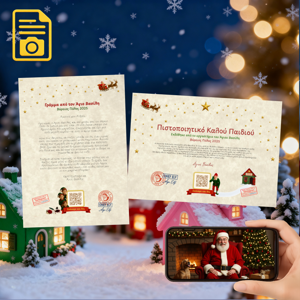 - Προσωποποιημένο Γράμμα με QR code από τον Άγιο Βασίλη σε μορφή PDF/PNG.